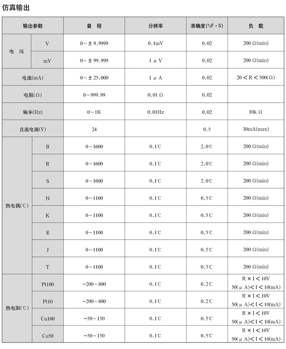 * 直接键入热电偶(热电阻)℃值,显示并输出对应的mV(Ω)值,无须再查分度表.