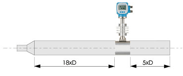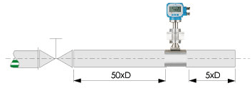 无论测量何种流体,传感器可以在水平管道上侧装,特别是测量过热蒸汽,饱和蒸汽和低温液体,